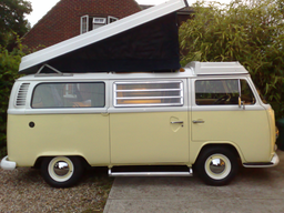 A quick site for my new Bay window camper A 1975 pop top Westfalia Auto 2.0L, exactly what I was after. Note this is an old page and will be updated soon, he's got a subaru engine now ! click on the thumbnail images below to see bigger images then click the back button on your browser to return to this page Its LHD. Runs like a absolute dream, a lot quicker than I expected, definitely no speed or performance issues. Needs remedial work, mainly electrics and a good tidy. Will respray but no idea of colour yet. No name for him/her as yet. 28k miles .. cough ! Absolutely immaculate underneath. Paint is weather worn, originally from Nevavda US its a great find. To do: Must find out how to get indicators sorted out, the main lights dim when the indicators are on, someone said its the earth but what exactly do they mean by that, there must be miles of earth cabling to check :-( Driver window winder mechanism just spins, tried to get it out today but had to shelve it, I can see how it works but it just will not come out (hats off to the production line for getting it in !) I fixed fuel line next to petrol tank, completely split and petrol everywhere, could have been a disaster. have read about some sort of fire extinguisher for the engine, must find out about these. Interior is really exceptional bar roof lining in front cab. Hate to say this (as the purists would kill me) but I'm going to modernise it to suit my needs. Great bonus, its already got 3 seat belts fitted, unfortunately they are lap belts so need to adapt to suit car seats for kids (any ideas pls email me [email protected]) really needs rewiring if I am honest. List of items to get: New window wind up mechanism - and then fit it somehow. new seals for all windows and roof - replace all wiring loom fridge (gap for it but no fridge) and what does the control below actually do (should it do) What's this control for under the seat?